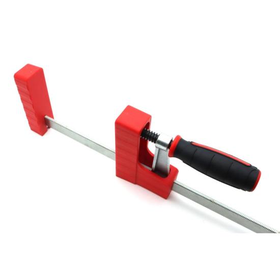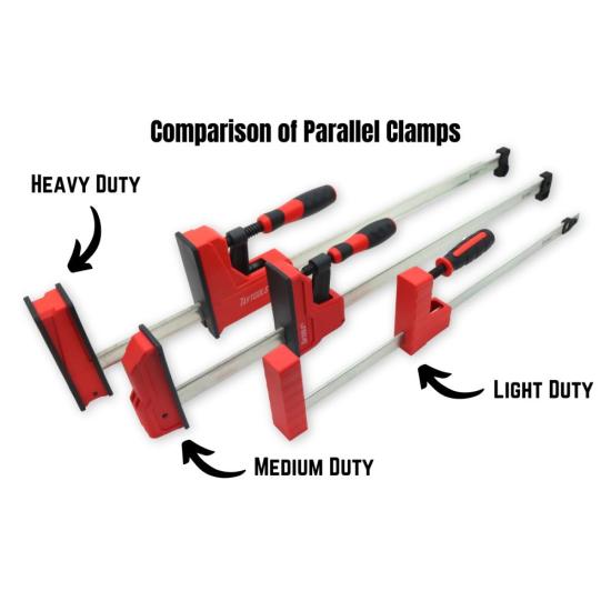 These 90-degree parallel clamps offer the perfect clamping solution for smaller panels and casework. They are particularly well-suited for any project requiring perpendicular 90-degree clamping pressure to the rail. These clamps ensure square glue-ups every time. They can also be used with your work parallel to the flat bar rail when clamping longer, flat pieces.