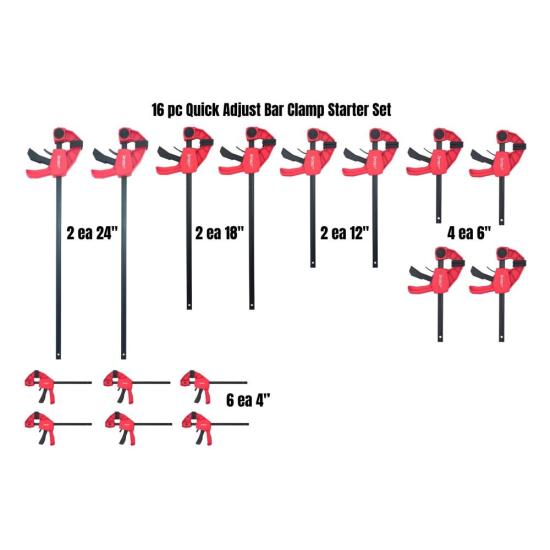This 16-piece starter set contains the following clamps: