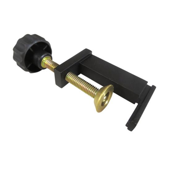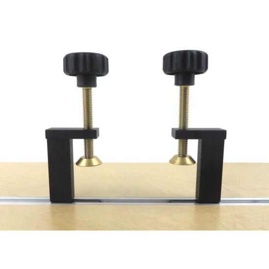 Will work with T track that accepts 1/4" or 5/16" T bolts as long as the top sidewall in not more than .15" thick. Will securely hold stock from 1/4" to 2" thick against your table Will work on drill...More Details