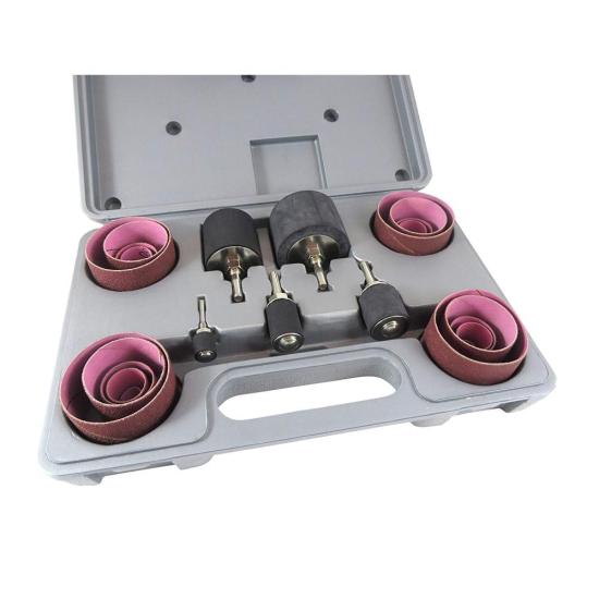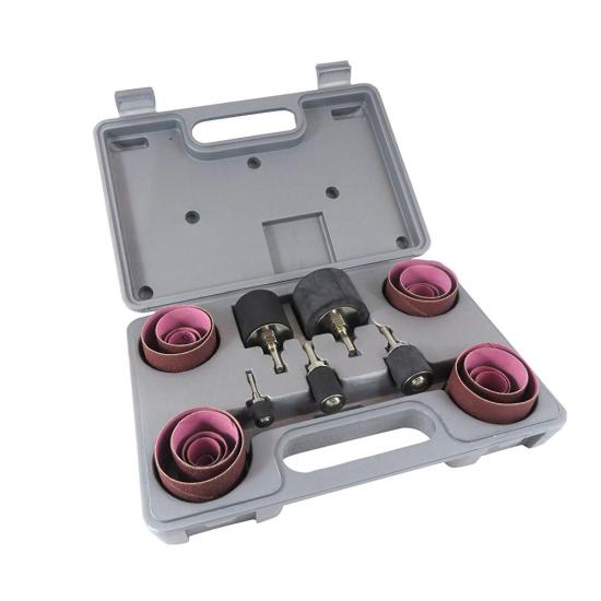 Sand contours and irregular shapes with either a drill press or hand drill Includes five expanding drums in sizes: 1/2" x 1/2", 3/4" x 1", 1" x 1", 1-1/2" x 1-1/2" and 2" x 1-1/2" Includes 2 sets of ...More Details