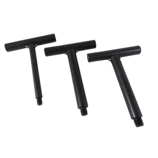 This T Wrench set is perfect for manually installing 1/4" x 20, 5/16" x 16 and 3/8" x 16 threaded inserts straight and easy without damaging the surrounding wood or fasteners. Units are 3-1/2" long with a 3" wide handle. Wrenches are solid welded steel constructed with black gun metal finish to prevent corrosion.
