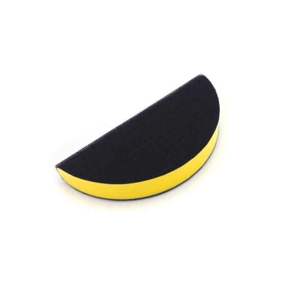 The ergonomically designed 5" diameter round-shaped hand sanding block features a 3" diameter raised handle for added grip and better control when sanding.