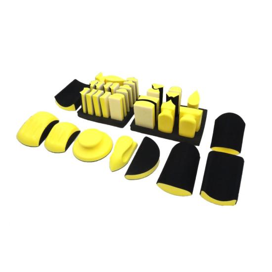 Kit includes 29 unique hand sanding block profiles. Due to these items being bundled, there are pairs of the Teardrop, Ergonomic Detail. There are also similar profiles in the Concave and Convex Blocks.