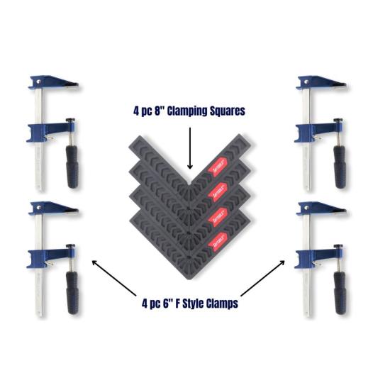 4 pc 8" Glass Reinforced Clamping Squares with 4 pc 6" F-Style Clamps