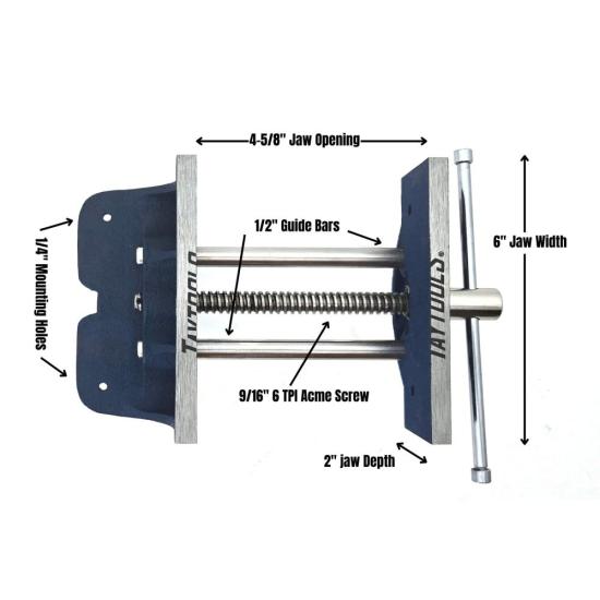 The 6 TPI trapezoidal-thread screw provides fast, smooth operation and locks firmly in place for precision work. Dual guide bars produce a rock-solid grip with minimal racking when parts are clamped off center.