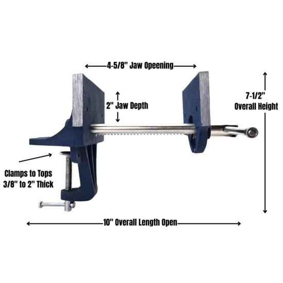 - Top Thickness: Clamps to tops from 3/8" to 2" thick