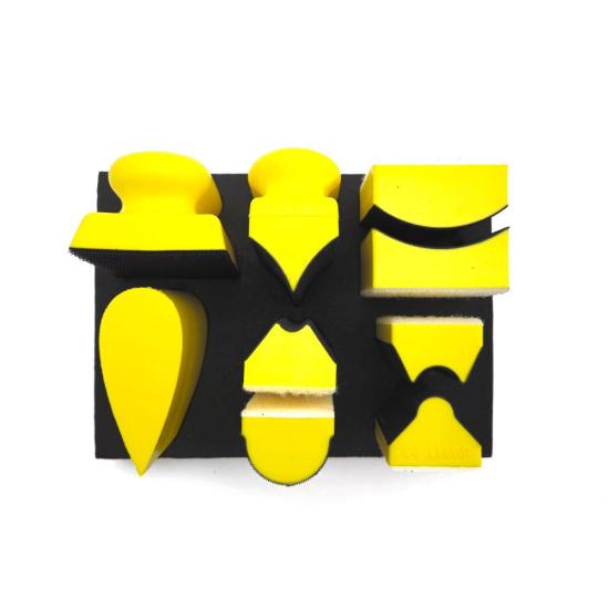 9 Piece Contoured Profile Hand Sanding Block Set with Assorted Convex & Concave Shapes