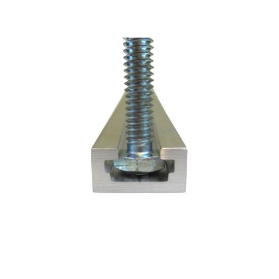 This T track is precision extruded and is 48" long, 3/8” thick and 3/4” wide. The inside groove will accept standard 1/4" hex bolts, 1/4" T bolts or 5/16" T bolts. Pre-drilled countersunk holes 3" from each end and then every 6". Screws not included.