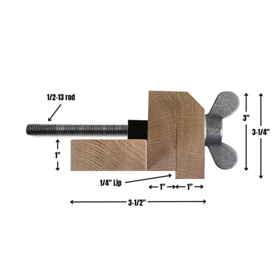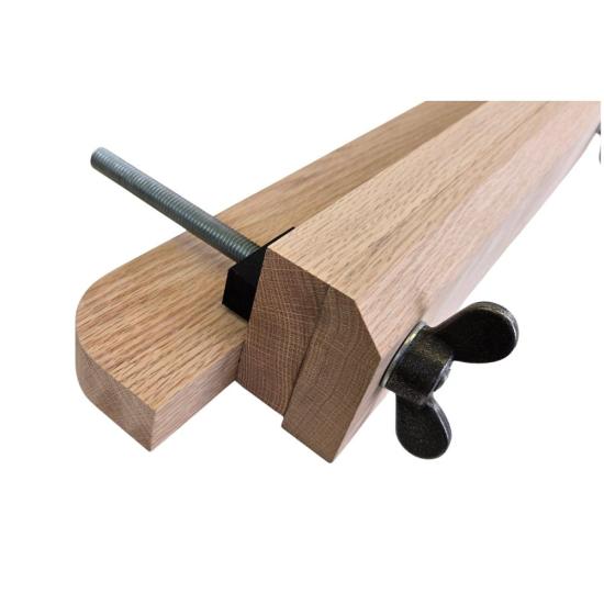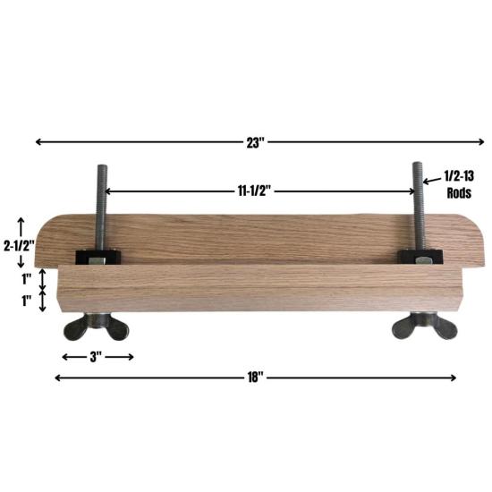 Improved Mid-Size Moxon Vise, L-Shaped Rear Jaw – Overall Size 23" x 3" x 4-3/4", Solid Oak Jaws, 3" Cast Wing Nuts, 8" or 10", 1/2-13 Threaded Rods