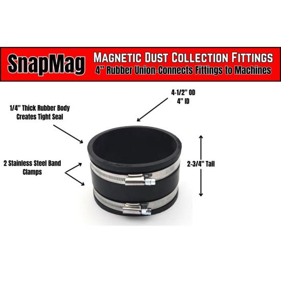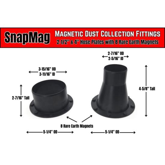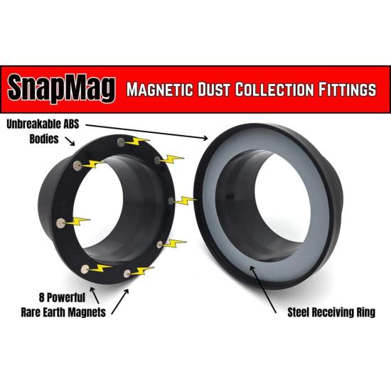 Product Description:Keep your shop cleaner, safer, and more efficient with the SnapMag Magnetic Dust Collection System. Designed for speed and convenience, SnapMag fittings use powerful rare earth magnets and steel ring receivers to create secure, tool-free and easy to move connections between your dust collector and woodworking machines.