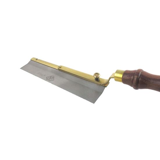 This saw is made by Thomas Flinn of Sheffield England the last traditional saw and plane maker in the UK and co-branded Pax / Taytools. This Reversible Gent’s Saw has been made in such a way to facilitate the left and right-handed worker. The cranked walnut handle allows cutting into the most awkward of corners with ease. The back is rolled solid brass and 1/2" wide by 0.160" thick. The folded brass back means the blade is held under tension offering excellent rigidity and balance. The saw plate is 0.020" thick with set on one just side of the blade. The handle is made from solid Walnut. Overall blade width is 1-5/8" with maximum cutting capacity of 1". The blade has 15 TPI. Saw plate is made from high carbon allow steel for durability and ease of sharpening. The teeth can be resharpened.