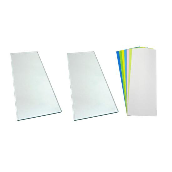 This set contains two sheets 5/16" x 5" x 12" dead flat float glass and 7 sheets of 3M™ lapping film 4-1/4" x 11" in the following microns sizes .3, 1, 3, 9, 12, 30, and 40