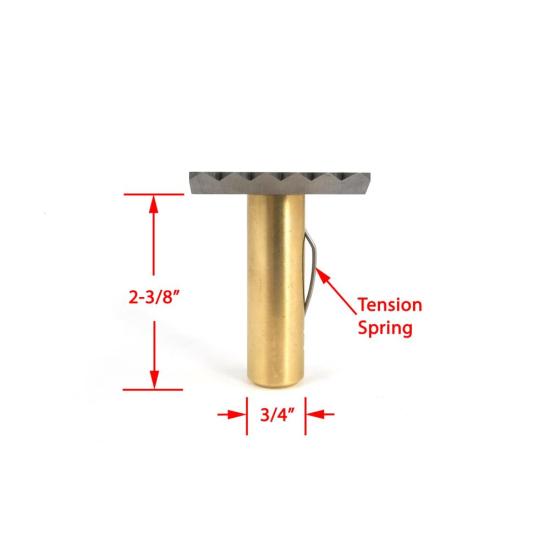 Workbench Plane Stop 2” Square Head with Toothed, Safe and V-Groove Sides, 3/4” x 2-3/8” Long Brass Post