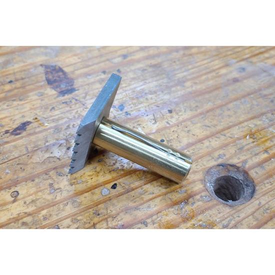 Taytools Workbench Plane Stop 2” Square Head with Toothed, Safe and V-Groove Sides, 3/4” x 2-3/8” Long Brass Post