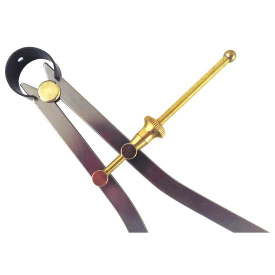Inside spring calipers are used for measuring and transferring precise inside (ID) measurements. These are a well-made pair of inside calipers for an excellent price. These dividers are made from high-grade carbon steel with hardened, rounded and finely polished points. They feature a rapid-adjust quick-spring nut for rapid and precise fine adjustments that will securely hold any measurement. To make large adjustments, tip the nut to disengage the threads, and slide to a new measurement. Release the nut to engage the threads and turn for fine adjustments. The adjustment mechanism is central located to assure smooth action. Fulcrum and adjustment mechanism are brass. “Yankee” style flat-leg construction makes these units very durable. They have a substantially hardened spring for years of service.