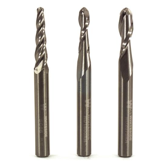 The 703 Ball Nose Set is designed for small CNC machines. This group contains three 1/4" shank bits consisting of two Ball Nose Spirals and one Conical Ball Nose Spiral. Great for CNC profiling. ...More Details