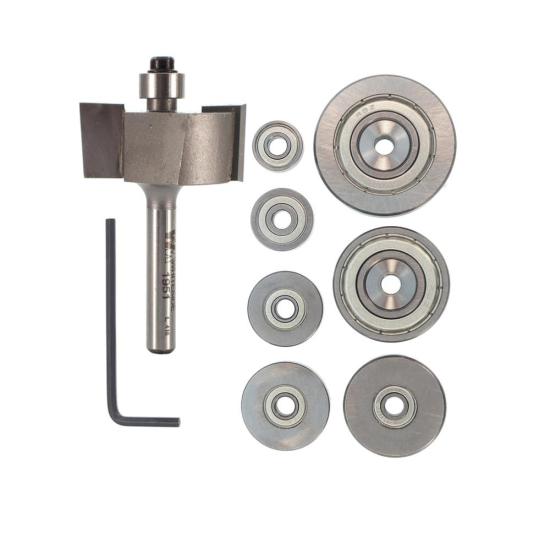 Change your Rabbet depth by changing the bearing! This 1/2" set includes all eight bearings to make 1/8”, 3/16”, 1/4", 1/2", 7/16”, 3/8”, 5/16”, and flush trim cuts. Hex Wrench included. Se...More Details